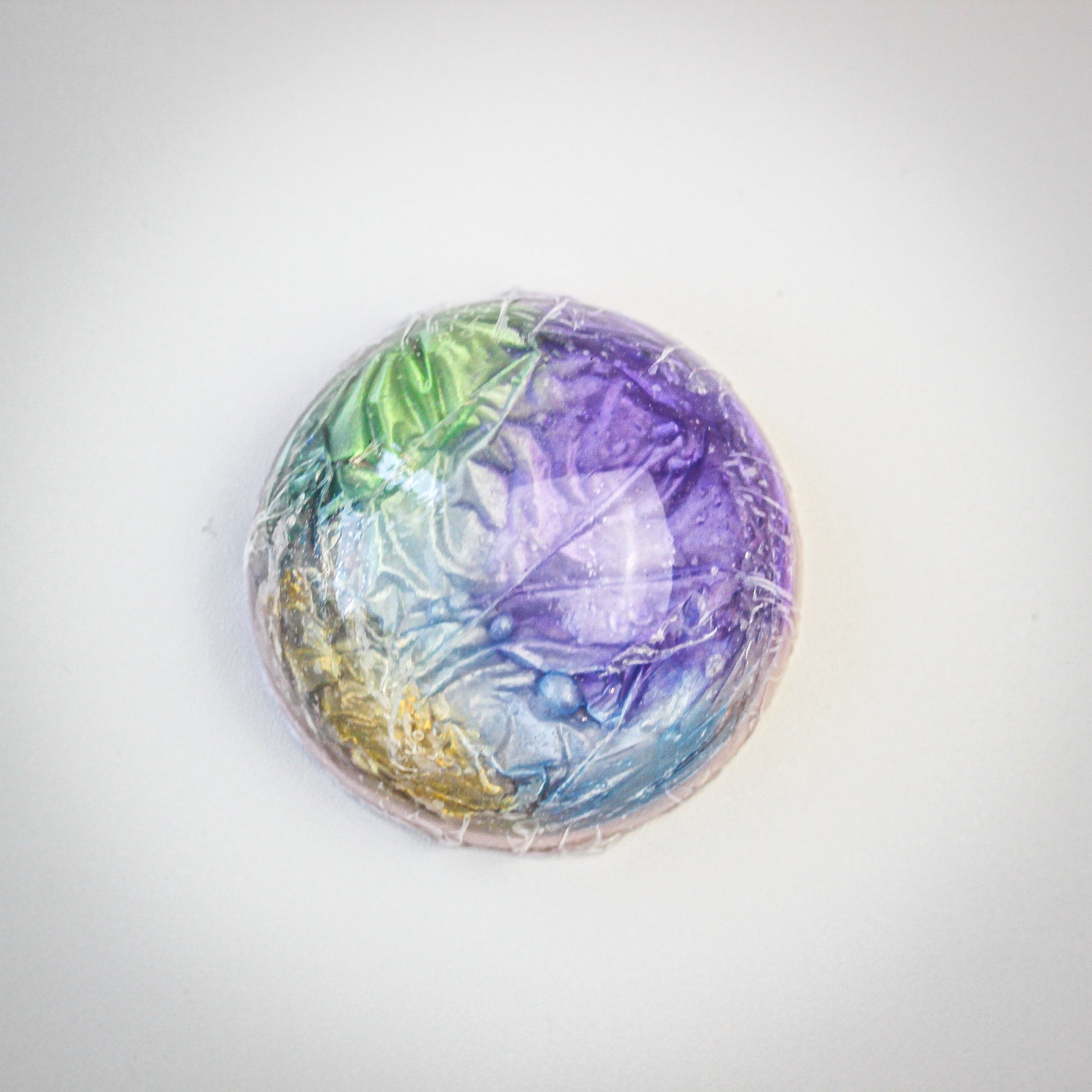 Our 3 oz half-dome Galaxy Soap is a little piece of art in your hands. Made with gentle glycerin soap and swirled with shimmering mica powder, each piece features a unique galaxy pattern that catches the light. Infused with the romantic aroma of Rose Petal fragrance oil, it cleanses while leaving skin soft, refreshed, and delicately scented.